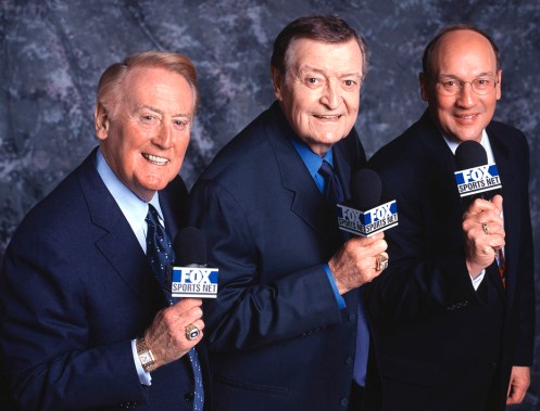 Los Angeles Dodgers Vin Scully, Los Angeles Lakers Chick Hearn and Los Angeles Kings Bob Miller.