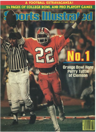 Clemson quarterback, Homer Jordan threw a touchdown pass to Perry Tuttle to all but clinch the ’81 season title for Clemson in a night time Orange Bowl vs Nebraska on January 1, 1982.