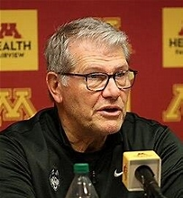 Luigi “Geno” Auriemma, obviously a great and seemingly always winning titles coach, but seemingly as with many highly sucessful coaches/human beings a bit of an “exit,” is pictured below. “Fwit” has UCLA but even that is unlikely to stop U.Conn women. Maybe the “miracle men” will also win it all, but as chalk I say no and I do not want them to.